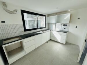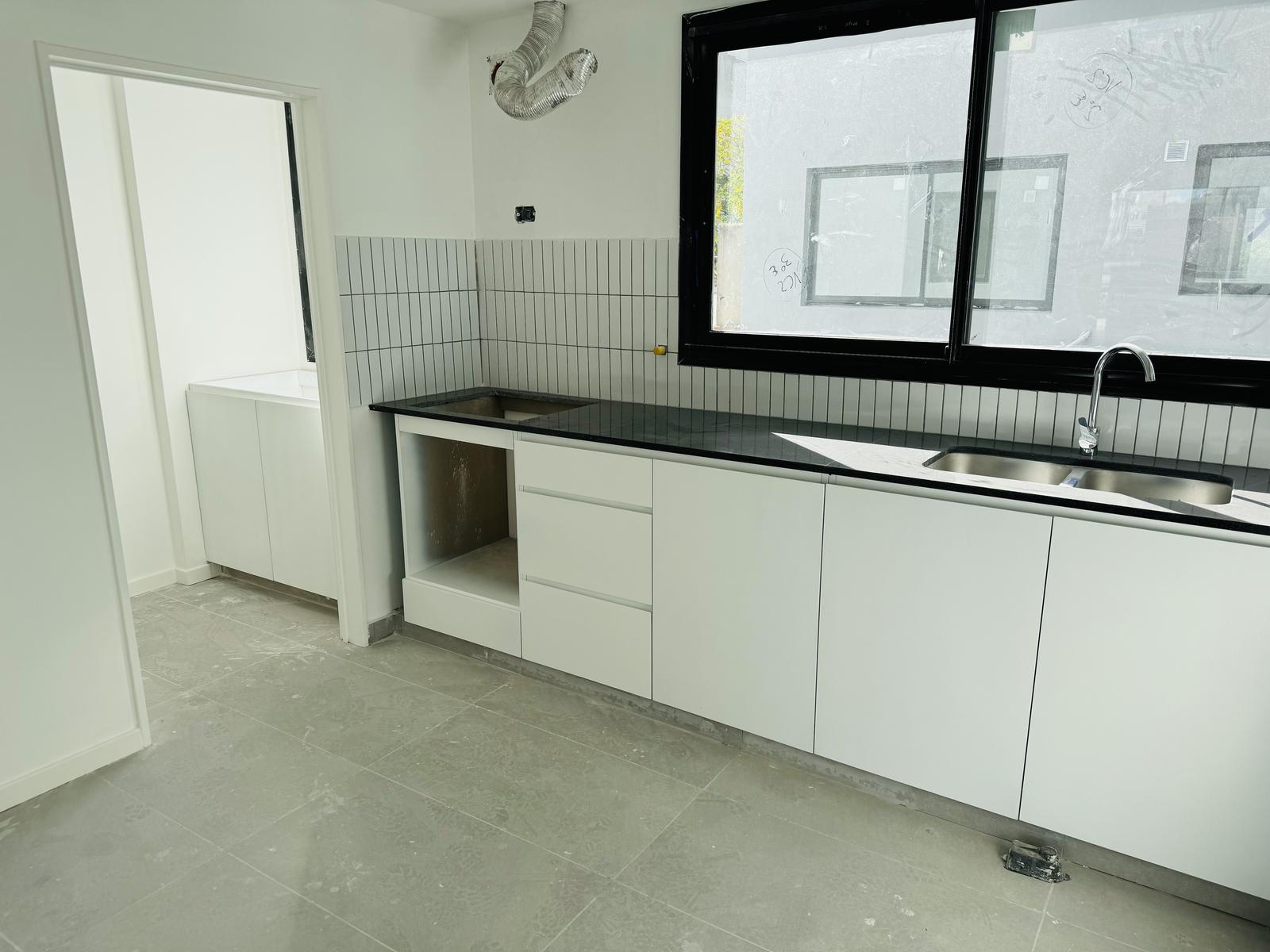 Puerta principal con acceso a GRAN living comedor con espectacular vental en Vidrio DVH.Cocina Separada con muebles bajo mesada y alacenas laqueados; anafe a gas y horno eléctrico.