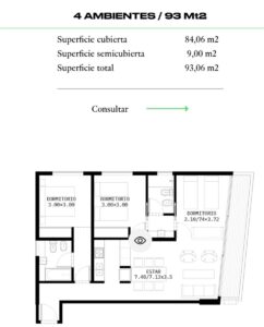 - Área total: 93.00 metros cuadrados