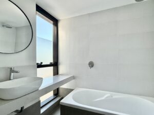 Dos dormitorios, el principal en suite. Un segundo baño completo. Todo con detalles de calidad. Se entrega con pre-instalación de aires acondicionados.