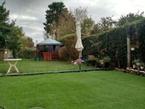 Planta baja: jardín, cochera, living comedor, tres dormitorios, cocina comedor, baño con ducha, lavadero cubierto y amplio parque.