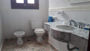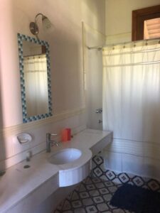 Un vestuario con ducha y baño completo y lugar de cambiado, a pasos de la piscina.-