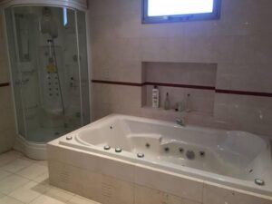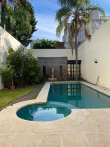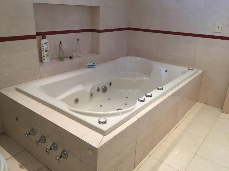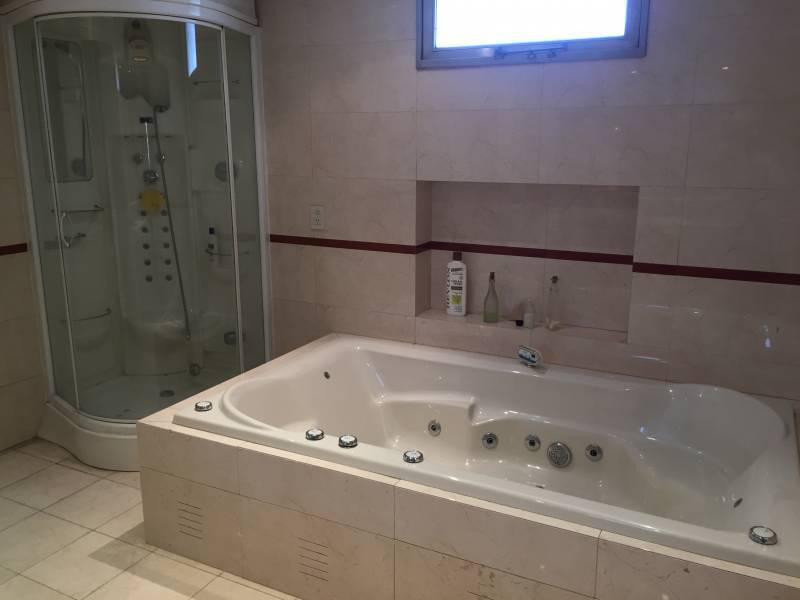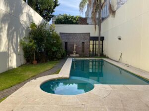Hermoso jardín con pileta de venecitas y jacuzzi incorporado. Gran parrilla, todo en perfectas condiciones de uso. El fondo, el cual ronda en los 300m2, se destaca el jardín, su pileta climatizada y al final encontramos un cómodo quincho (hoy utilizado como gimnasio)