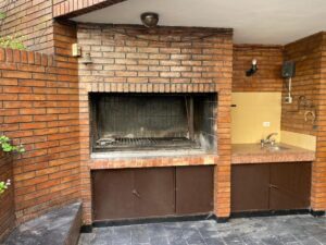 En planta subsuelo, encontramos un portón doble con garage para 5 autos cubiertos. Dependencia de servicio con su baño con ducha y sala de máquinas. Desde el garage y desde el Living en la planta superior, tenemos acceso a un lindo patio donde se encuentra la parrilla.