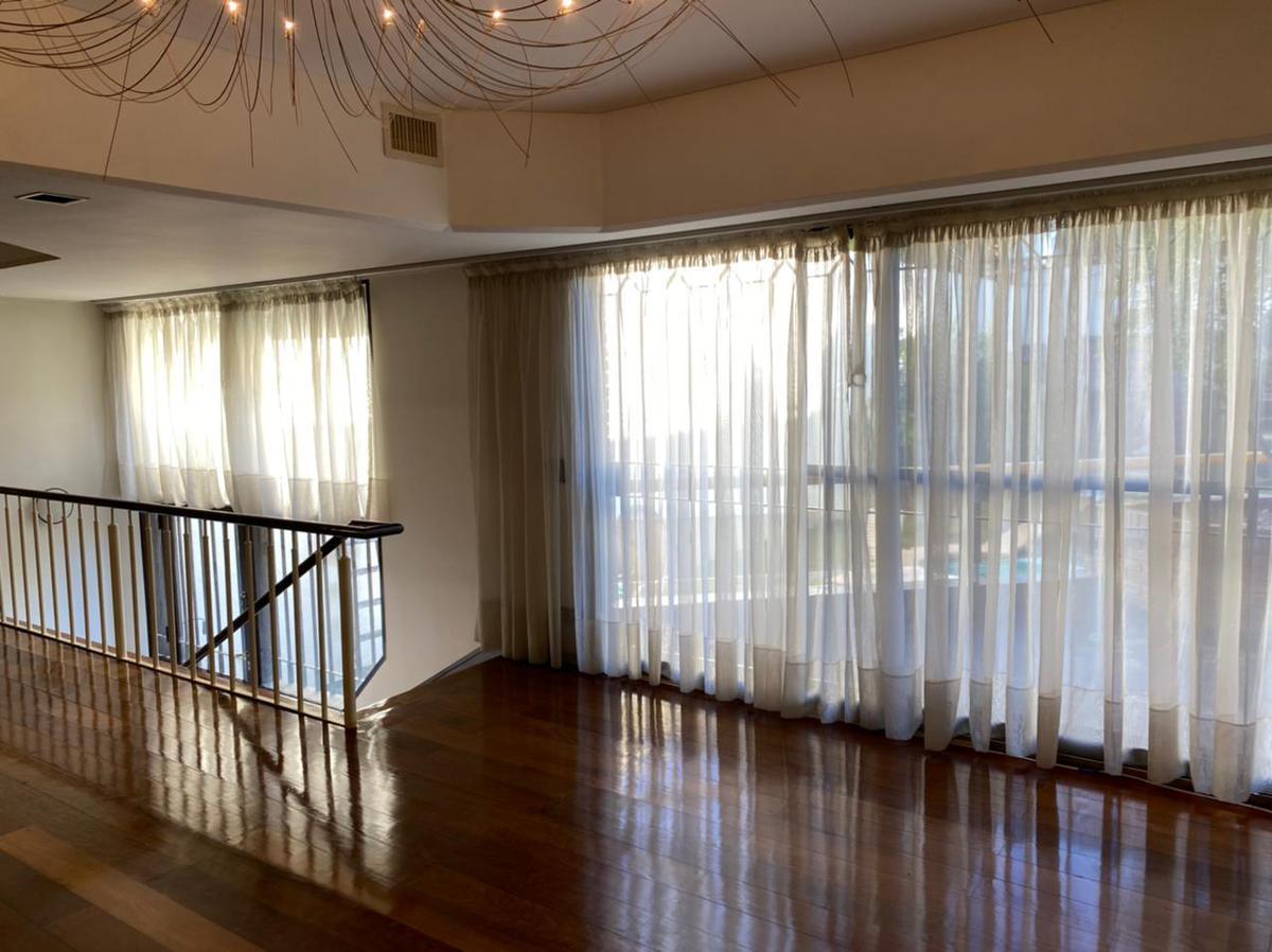 En la planta superior encontramos 3 amplios y cómodos dormitorios. Suite principal muy amplia al frente, con regio vestidor. Baño muy cómodo con doble bacha, box de ducha escocesa y jacuzzi doble Los otros dos dormitorios poseen salida a balcón hacia el contrafrente (pileta) ambos muy amplios con regios placares, doble ventanal y cada uno con sector para escritorio. Baño completo compartimentado.