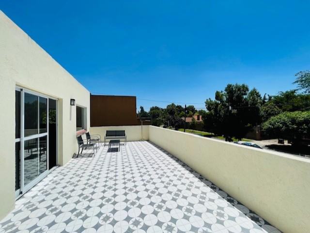 Al subir por las escaleras, nos encontramos con un espacio abierto, muy amplio, que puede utilizarse de playroom, con amplio ventanal para salir al balcón terraza, el cual cuenta con espacio para mesa y sillas.