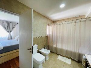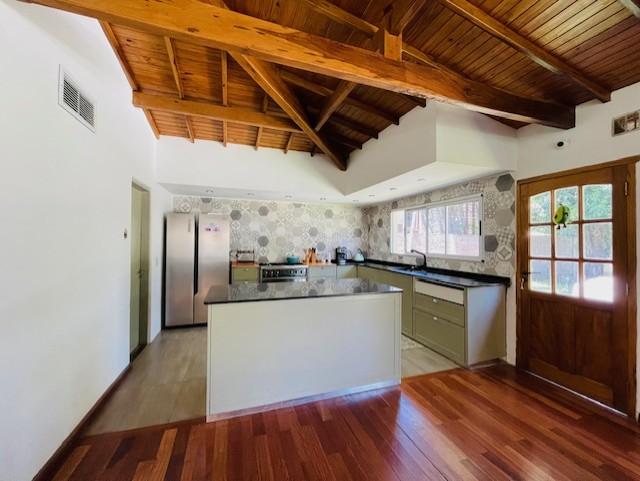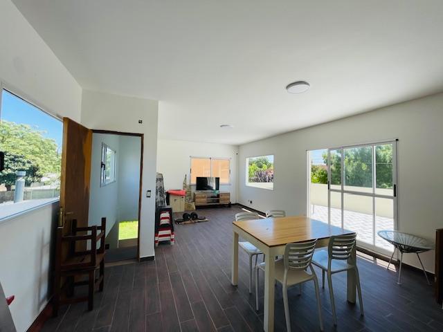Cuenta con 3 habitaciones en PB, una de ellas en suite, con vestidor y baño completo, con otro baño completo para visitas y resto de las habitaciones. Con una cocina comedor integrados, lo cual permite la sinergia en momentos de eventos sociales, amplio espacio y con mucha luz natural ingresando por sus ventanales, los cuales dejan ver el hermoso verde del jardín.