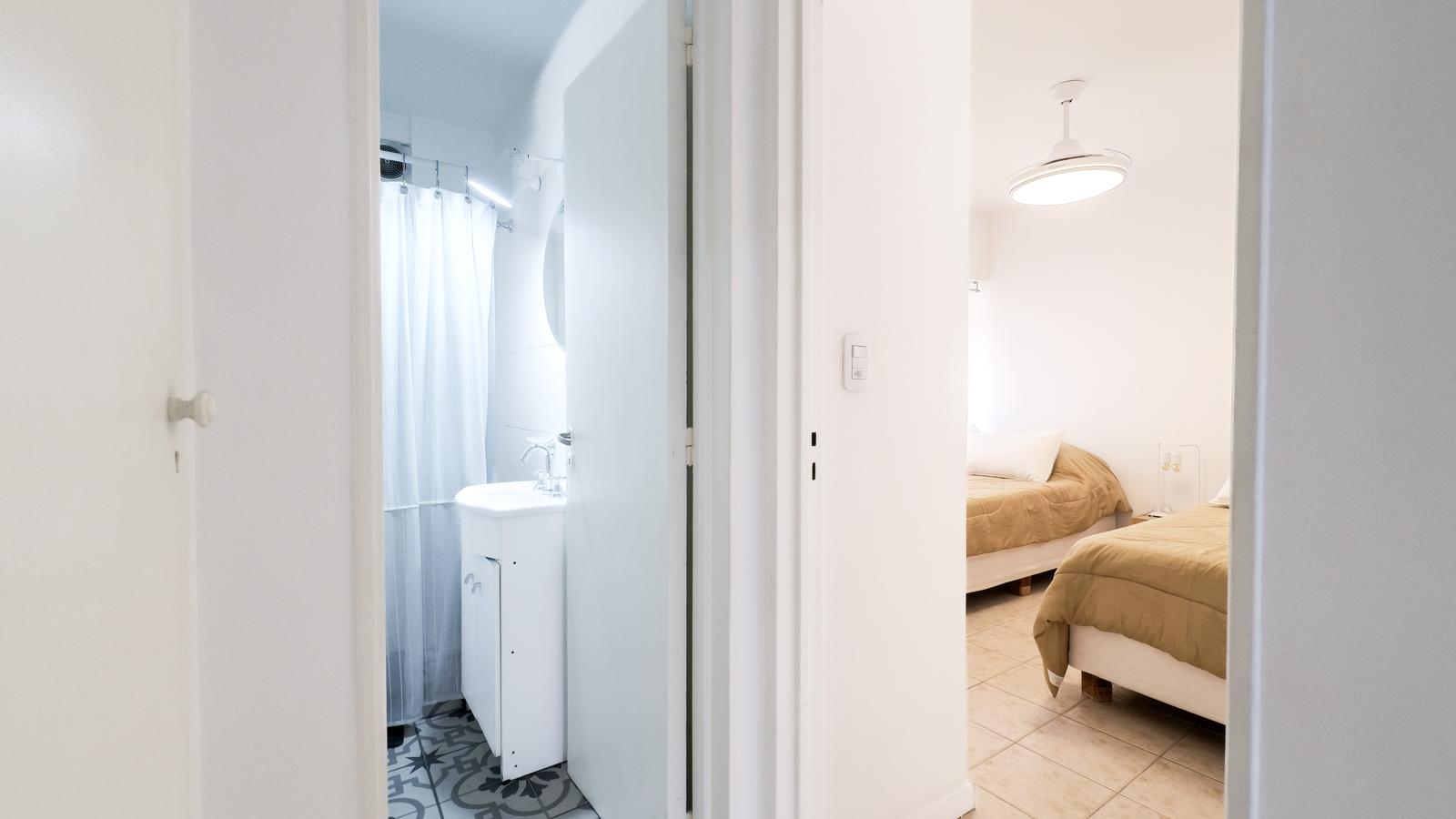 Cuenta con habitación para dos personas, con cómodos placards . La misma tiene disposición con ventana hacia el patio .Cuenta con baño completo.