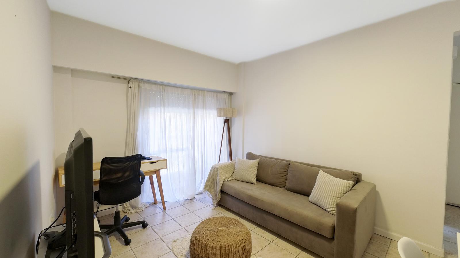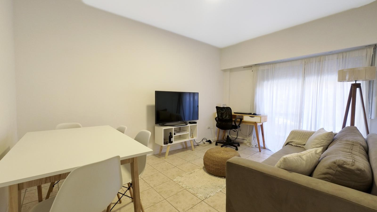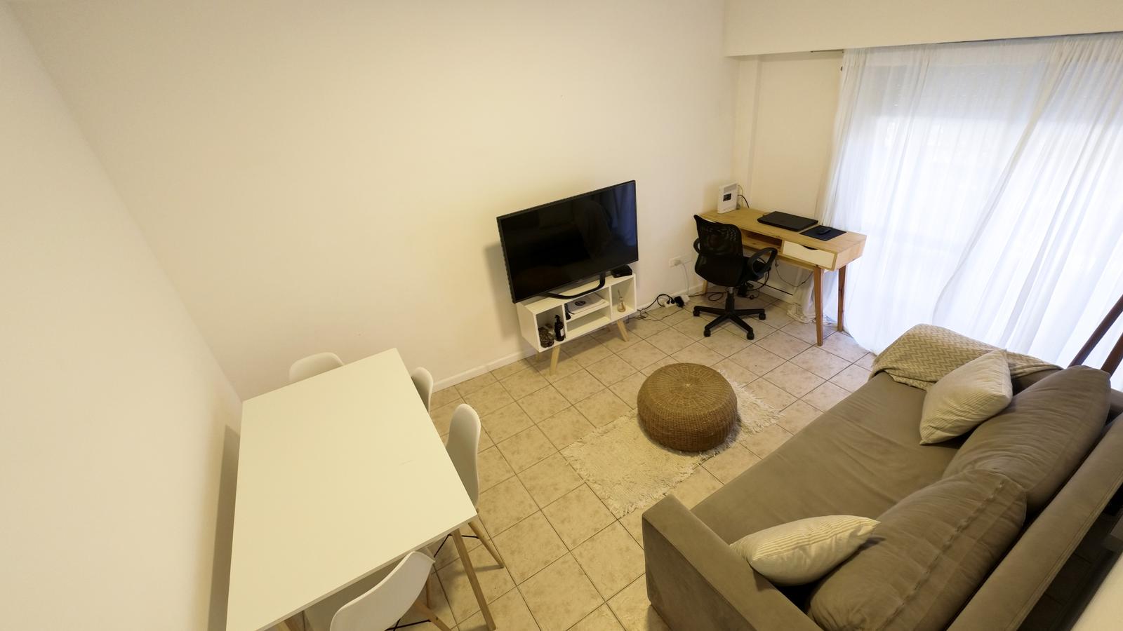 Al ingresar al departamento nos encontramos con un amplio living comedor,con espacio para mesa ,cómodo sillón y escritorio.
