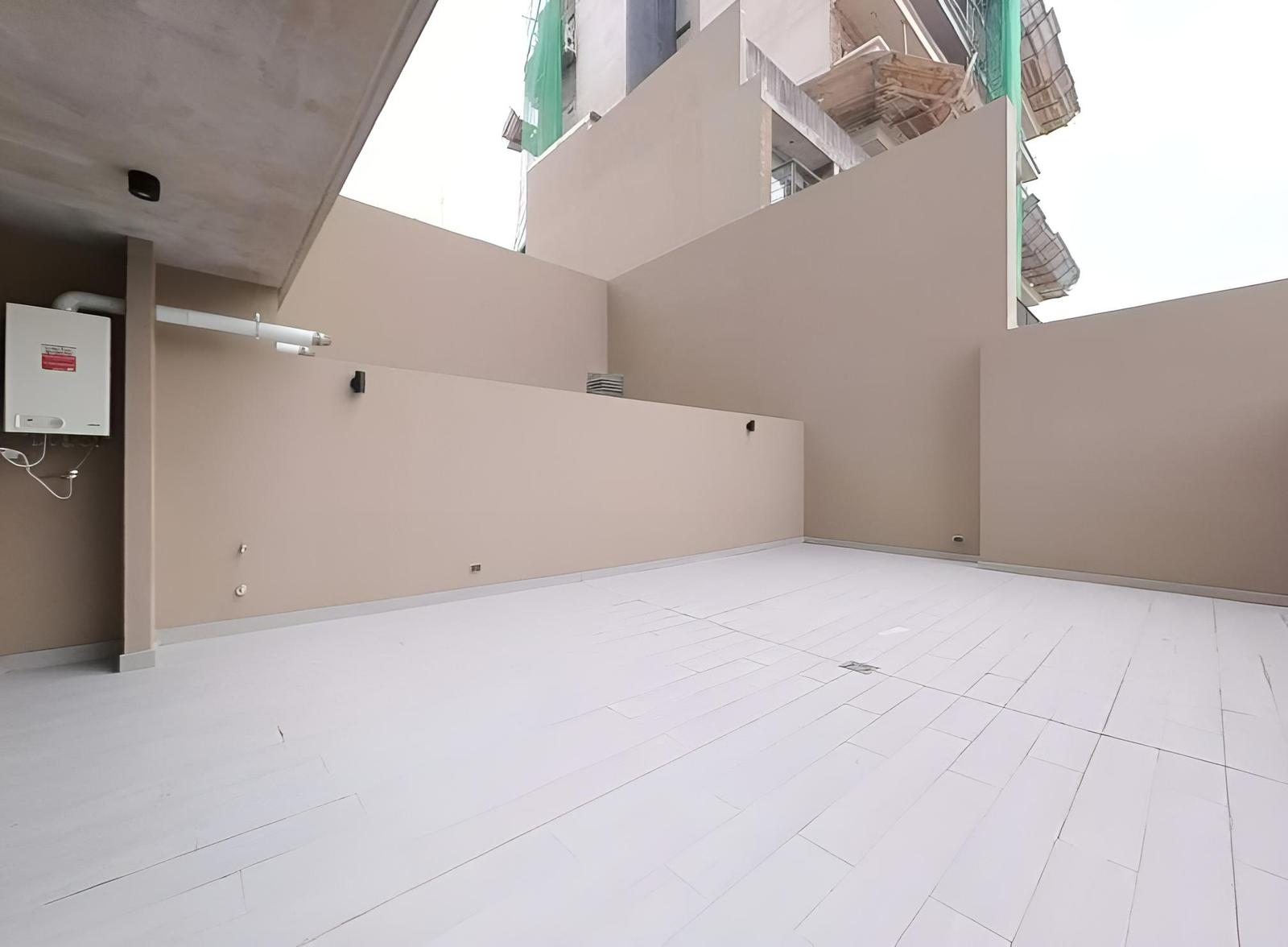 Se destaca el amplio patio de 48 m2 que proyecta posibilidades de usos múltiples tales como quincho, piscina individual, jardín, o incluso la expansión del living comedor con espacios de escritorio, biblioteca o afines