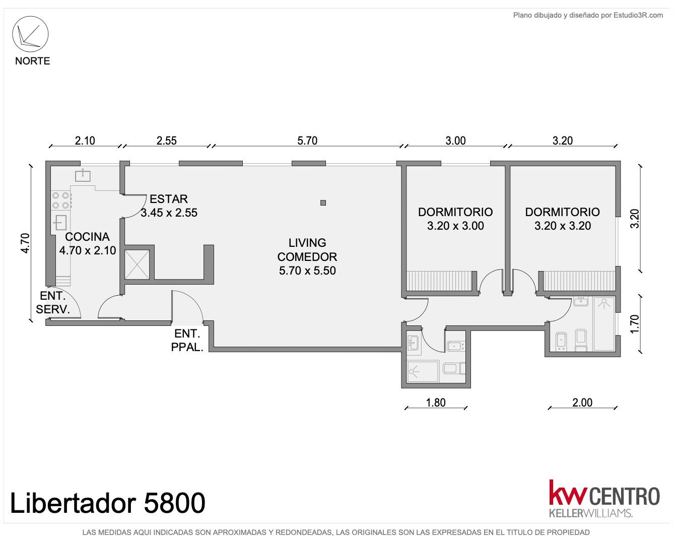 Descripción: DEPARTAMENTO 3 AMBIENTES - LIBERTADOR 5800Ubicación Premium. Excelente departamento ubicado en Avenida Libertador 5800, una de las arterias más importantes de la ciudad, que garantiza conectividad y prestigio en una zona consolidada.Características del Departamento:- 3 ambientes amplios y luminosos con distribución funcional- Superficie generosa con ambientes de dimensiones destacables- Excelente iluminación natural en todos los espaciosDistribución de Ambientes:Área Social:- Cocina con doble circulación (4.70 x 2.10m) completamente equipada con anafe, horno y campana extractora- Lavadero integrado con la cocina para mayor funcionalidad- Entrada de servicio independiente que brinda privacidad y comodidadÁrea Privada:- 2 dormitorios de generosas dimensiones:- 2 baños completos con acabados modernosCaracterísticas Destacadas:- Pisos de porcelanato de gran formato en toda la unidad- Espacios amplios que permiten múltiples configuraciones de mobiliario- Excelente estado de conservación- Orientación favorable que garantiza luminosidad durante todo el díaAmenities del Edificio:- Jardín propio con diseño paisajístico profesional- Espacios verdes cuidados con sectores de descanso- Ambiente cálido y acogedor en las áreas comunes- Mantenimiento impecable de las instalacionesIdeal para:- Familias que buscan comodidad y amplitud- Profesionales que valoran la ubicación estratégica- Inversores que aprecian propiedades en zonas premium- Quienes buscan un hogar con espacios generosos y funcionalesEsta propiedad combina la comodidad de un hogar amplio con la practicidad de una ubicación privilegiada, ofreciendo una excelente calidad de vida en un entorno cuidado y distinguido.13; Corredor interviniente CABA , PABLO FAIJA CUCICBA 3964- Corredor Interviniente PROVINCIA DE BUENOS AIRES , PABLO FAIJA MARTILLERO PUBLICO CMYCPDJQ MAT 913 FOLIO 105 TOMO II La tasación, intermediación y la conclusión de las operaciones sobre esta propiedad son actividades exclusivas de este corredor matriculado, conforme las previsiones de la ley 20.266, la ley CABA 2340, la ley provincial 10.973 y sus modif. y las normas reglamentarias dictadas por los colegios departamentales. Las oficinas asociadas a la red Keller Williams actúan en forma independiente, brindando servicios a corredores, agentes y al público en general, y su intervención se limita a la prestación de servicios inmobiliarios que no incluyen actos de corretaje ni intermediación inmobiliaria. Mostrar toda la descripción