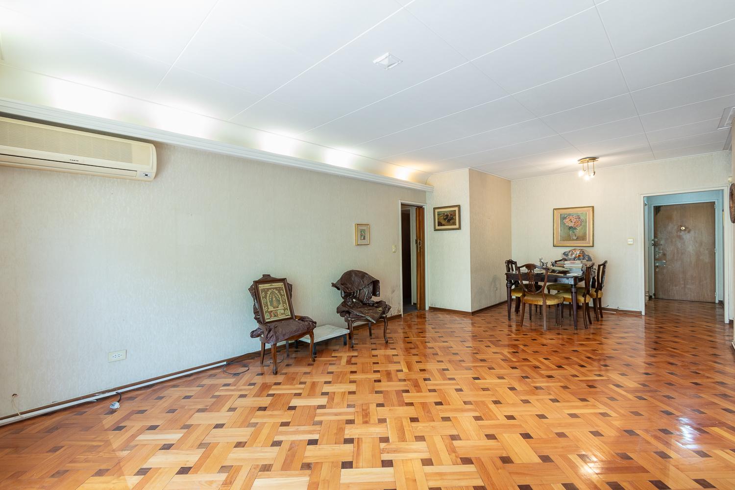 Amplio living comedor muy luminoso, con salida al balcón que da al frente.Cuenta con 3 dormitorios espaciosos que comparten 1 baño completo y 1 toilette.Cocina independiente, lavadero con toilette y dependencia de servicio.Calefacción por aire acondicionado y losa radiante.Espacio guardacoche y baulera incluidas.Coordinemos una visita!