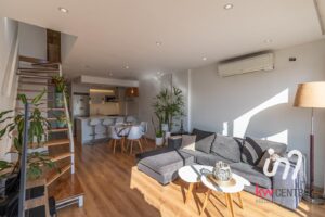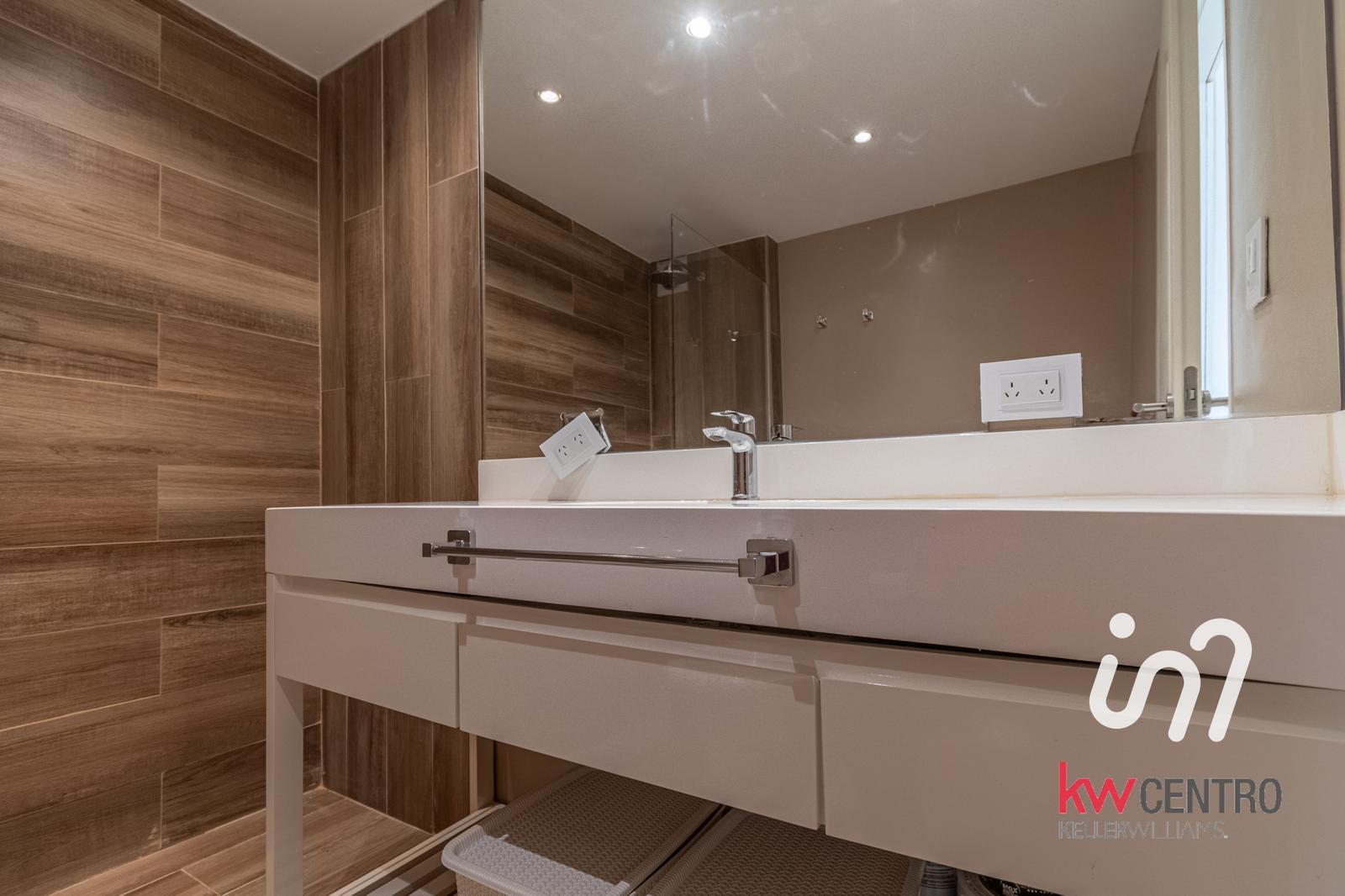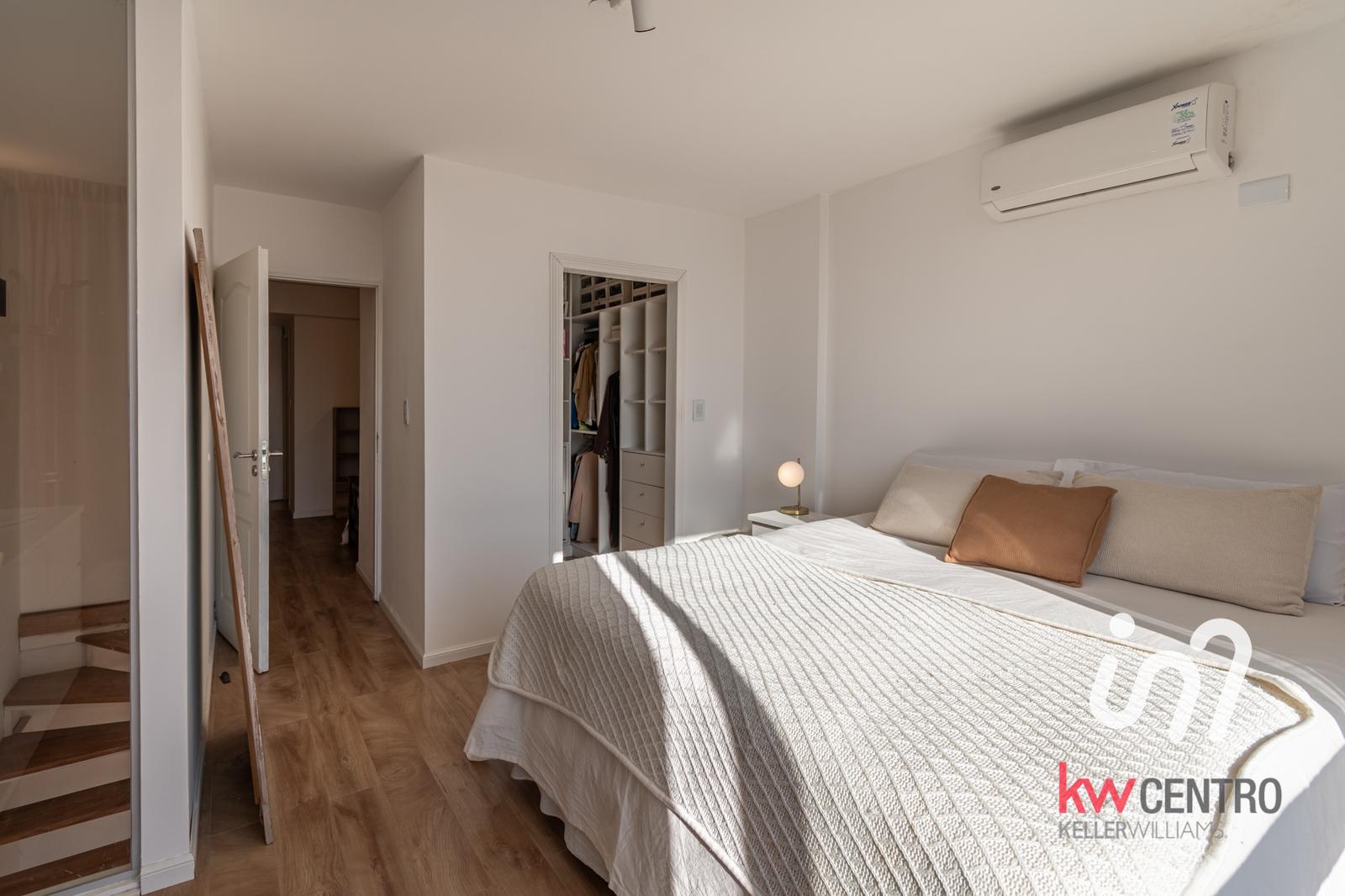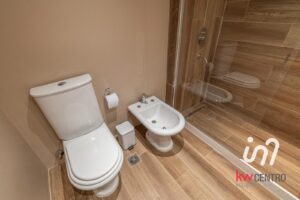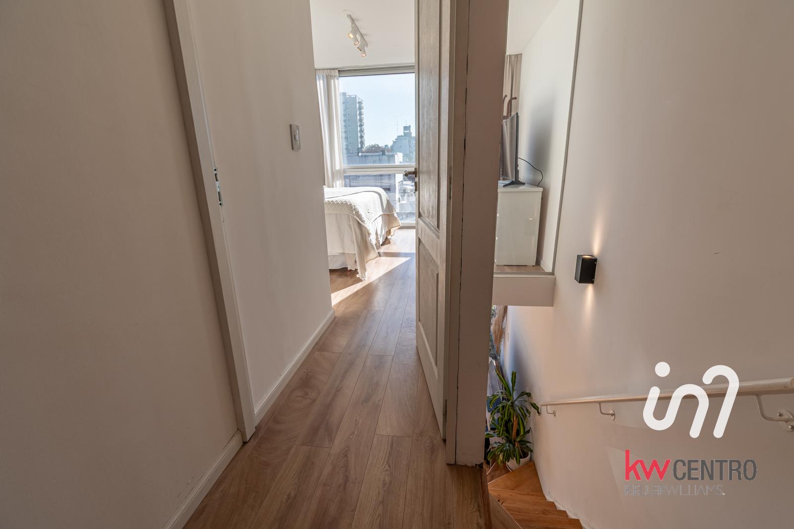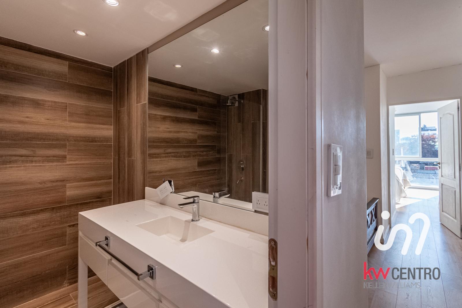 En el segundo piso se llega a un escritorio de buenas dimensiones y se accede por puerta al dormitorio con vestidor también con orientación norte y mucha luz y un segundo baño completo, moderno con revestimientos similares madera.