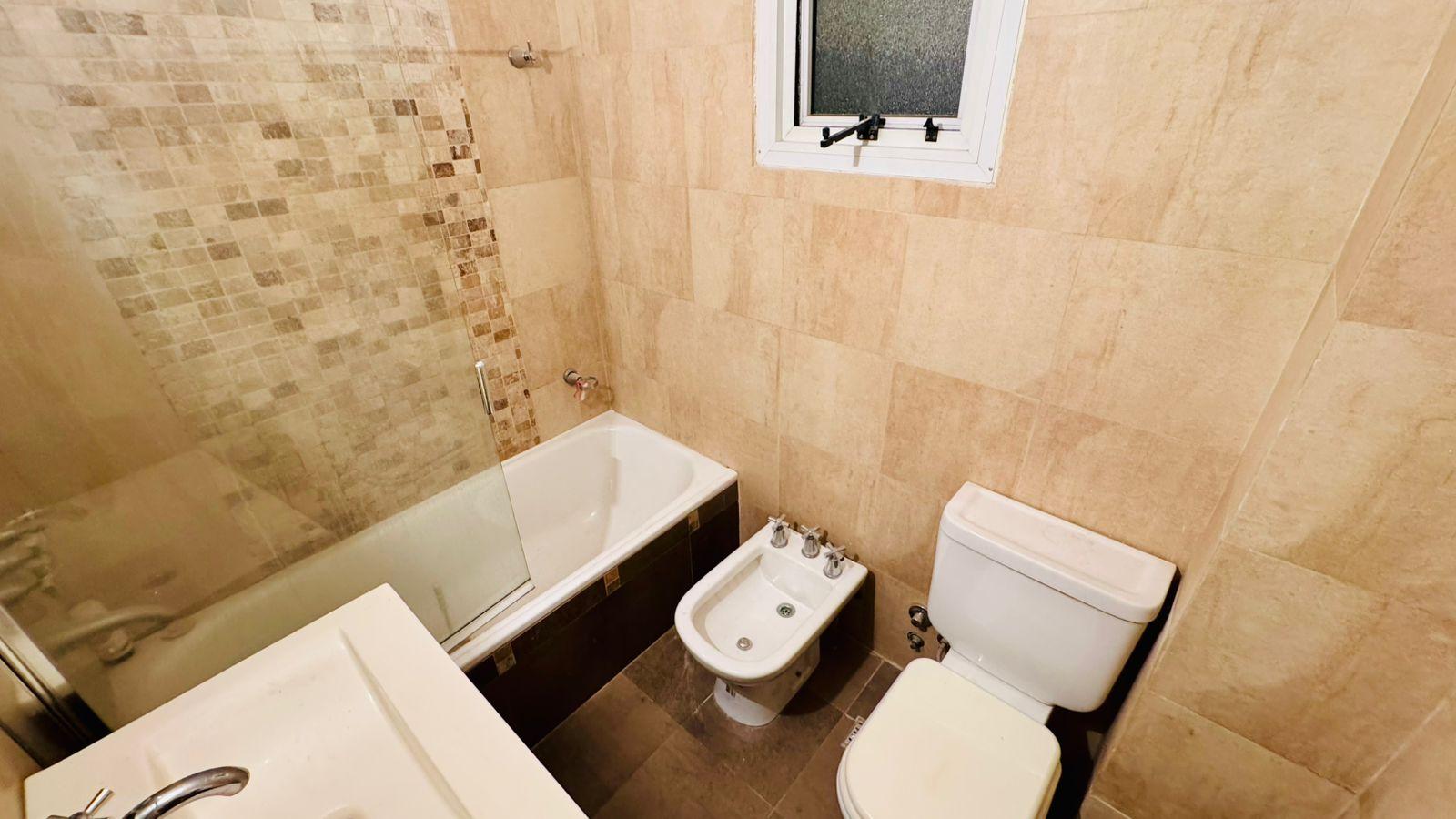 Cocina eléctrica y split frio calor. Buen placard de guardado y moderno baño.