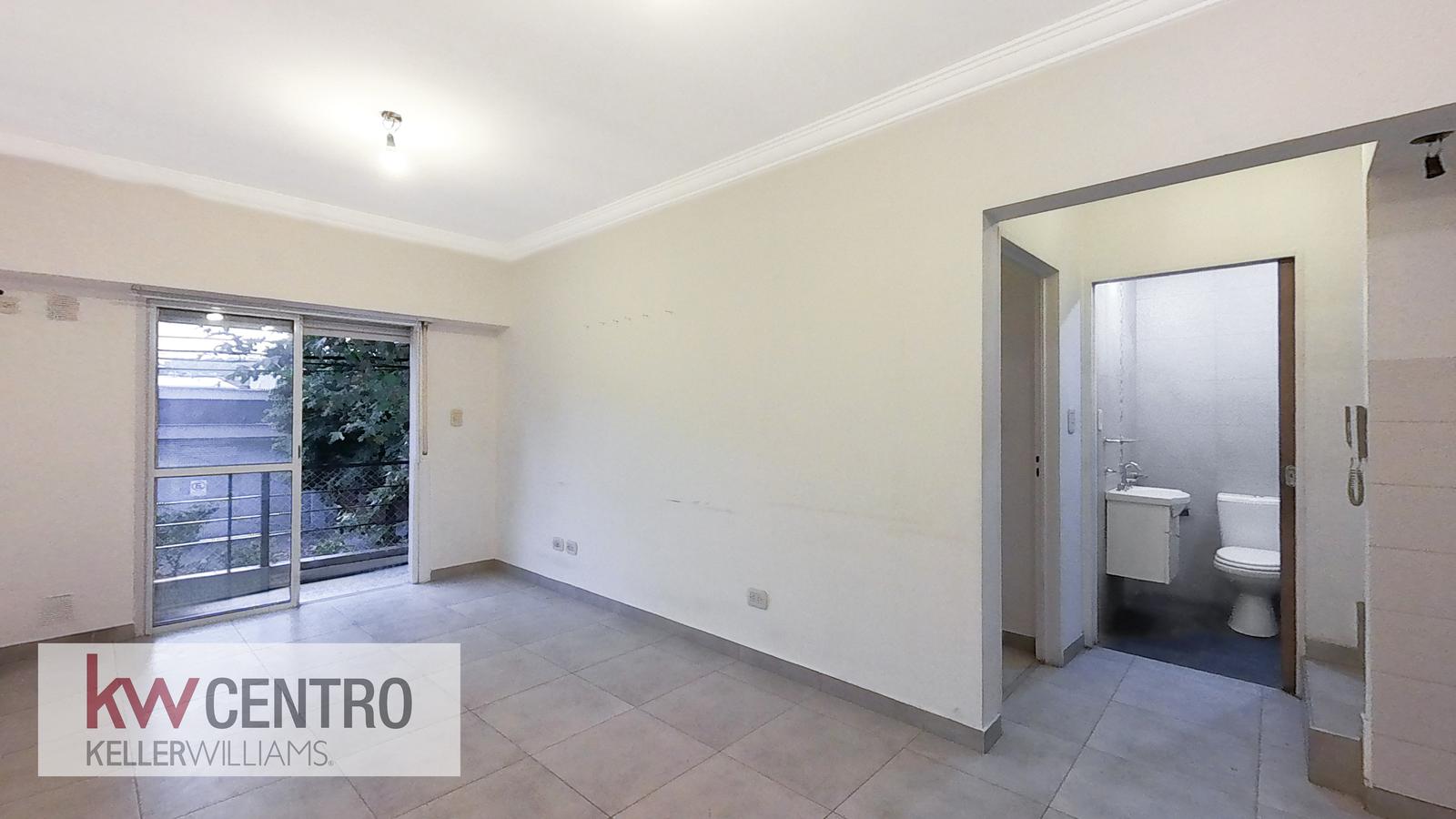Al ingresar al primer piso por escalera nos encontramos con amplio living comedor, cocina integrada . Balcón al frente , con vista a Avda.Alvarez Jonte , Hacia la derecha se encuentran el dormitorio y el baño.